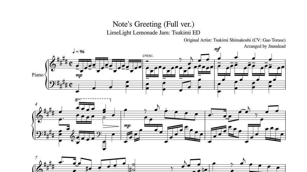 [LimeLight Lemonade Jam: Tsukimi ED] Note's Greeting (Full ver.) Piano ArrangementJnundead - Anime on Piano$2+2usdPDF Only$3+3usdMIDI Only$5+5usdPDF + MIDI32usdName a fair price:$I want this!Add to wishlist New wishlistShare on XShare on Facebook Copy linkCopy product URL