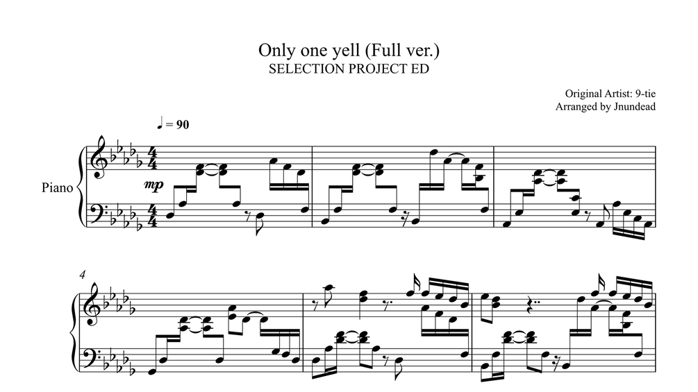 [SELECTION PROJECT ED] Only one yell (Full ver.) Piano ArrangementJnundead - Anime on Piano$2+2usdPDF Only$3+3usdMIDI Only$5+5usdPDF + MIDI32usdName a fair price:$I want this!Add to wishlist New wishlistShareShare on XShare on Facebook Copy linkCopy product URL