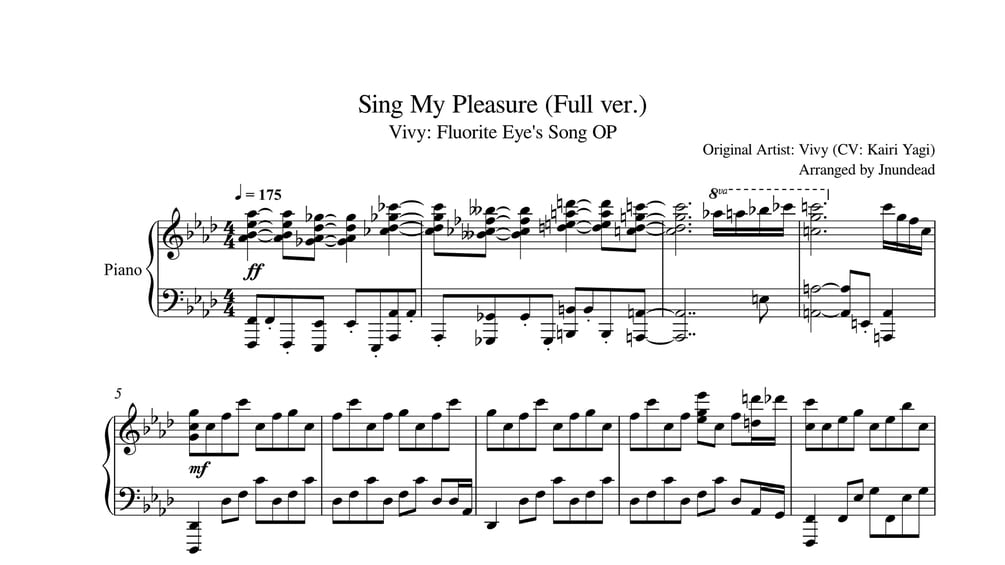 [Vivy: Fluorite Eye's Song OP] Sing My Pleasure (Full ver.) Piano Arrangement